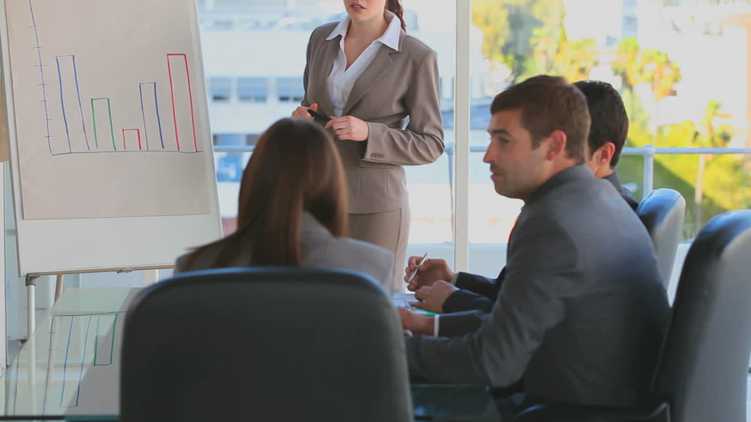 - Business Meeting with Colleagues Discussing Chart Presentation