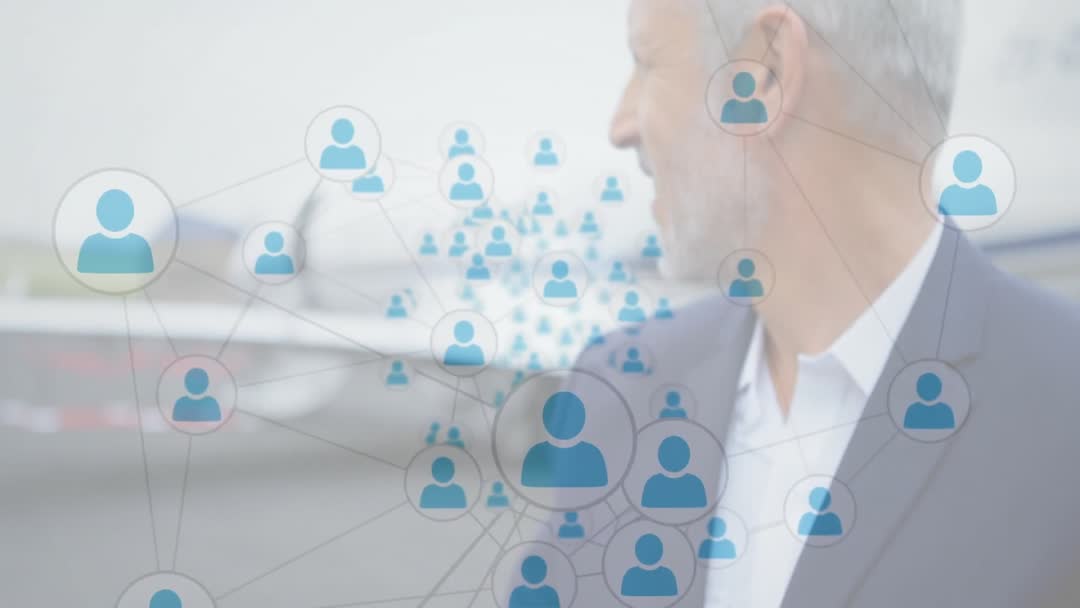 This modern, dynamic video illustrates the concept of global business connectivity using digital network icons superimposed on an executive environment. Ideal for use in marketing materials for tech companies focusing on digital communication solutions, corporate presentations about networking, or articles relating to business travel and executive lifestyles. It emphasizes the interaction between real-world business practices and digital advancements, appealing to companies in aviation, technology, and corporate project management.