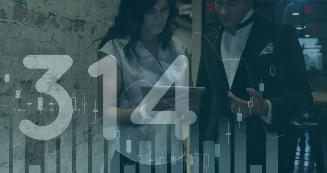 Two business professionals reviewing data on a digital tablet with financial charts and graphs superimposed. This versatile video represents modern business practices, analysis, and teamwork. Ideal for use in presentations, business blogs, financial services, or articles on digital technology in market research.