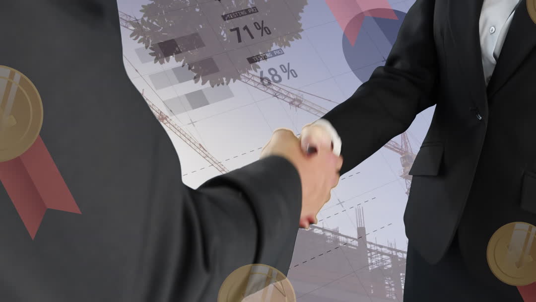 - Business Partnership Handshake with Graphic Overlay and Data Analysis