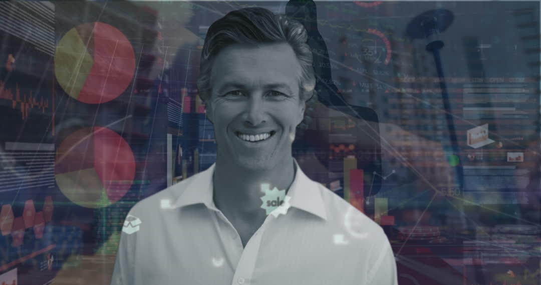 Businessman is confidently engaging with dynamic financial data and statistics. The video features analytics and technology visualizations, reflecting global business and innovation. Effective for corporate marketing, entrepreneurship events, and business strategy content.