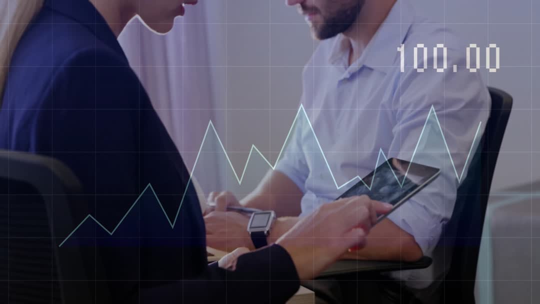 Business Professionals Analyzing Data on Tablet with Graph Overlay Video