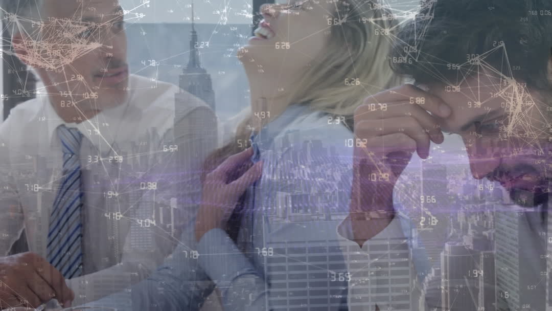 Business Professionals Collaborating Amidst Digital Data Overlay Video