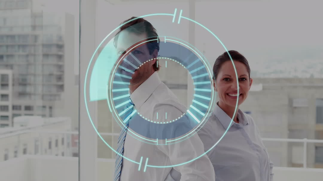 Business Professionals with Futuristic Custom Scan Overlay Video