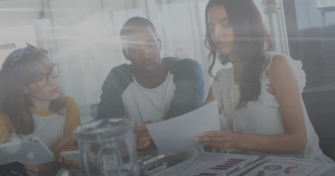 - Business Team Analyzing Charts with Digital Interface Overlay