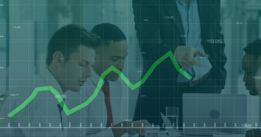 - Business Team Analyzing Financial Data with Green Growth Chart