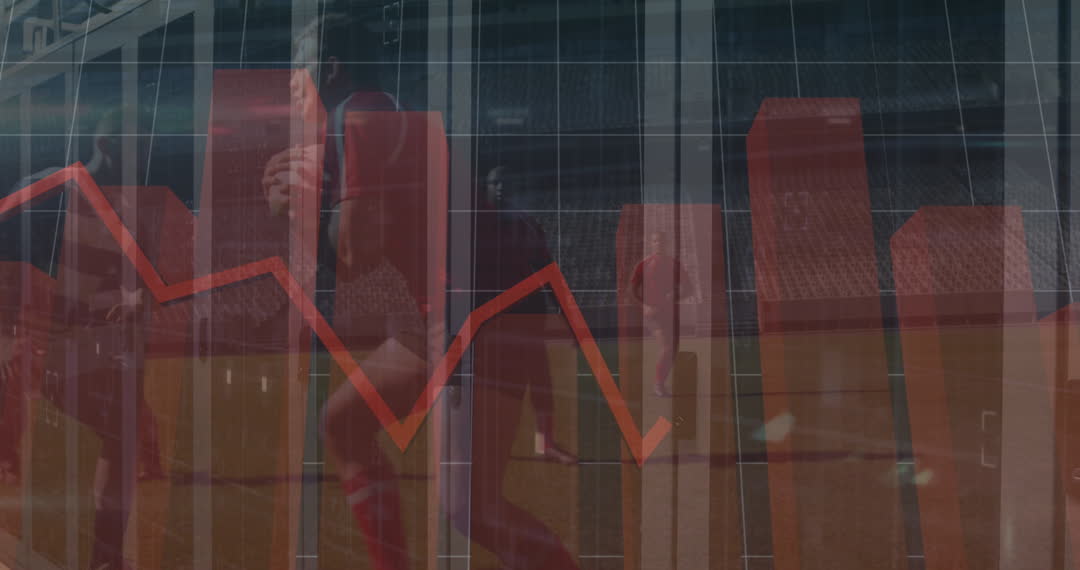 This creative blend shows a dynamic team intensely collaborating, representing the fusion of traditional office settings and modern digital economy. The overlaid financial charts highlight technology's role in today's business processes. Useful for illustrating concepts related to team dynamics, technological integration in business, digital transformations, or modern workspace cultures.