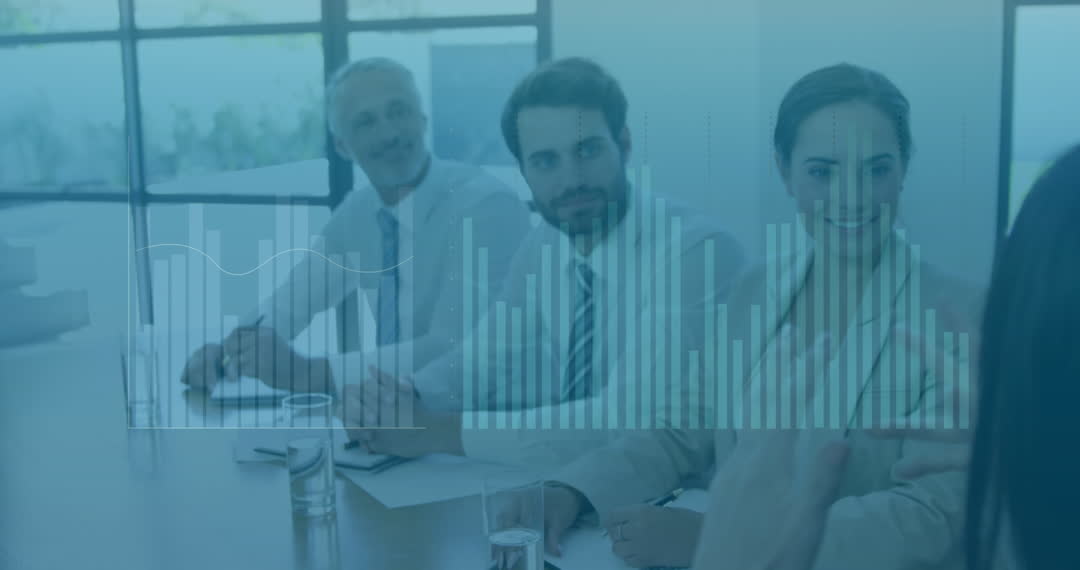 - Business Team Meeting with Financial Data Overlays