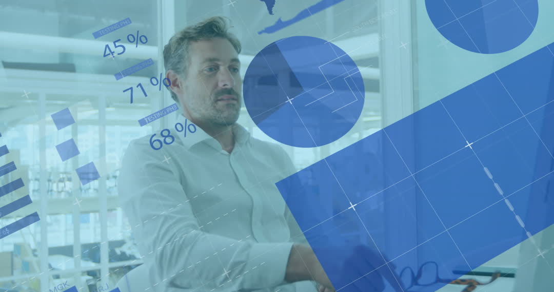- Businessman Analyzing Financial Data Visualization in Modern Office