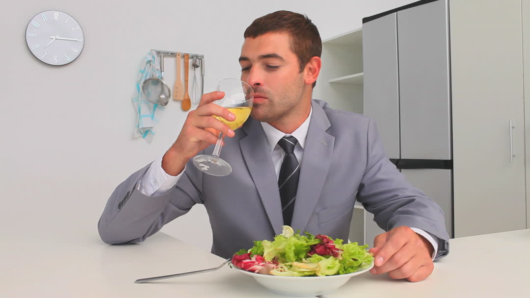 - Businessman Enjoying Healthy Salad and Wine Break
