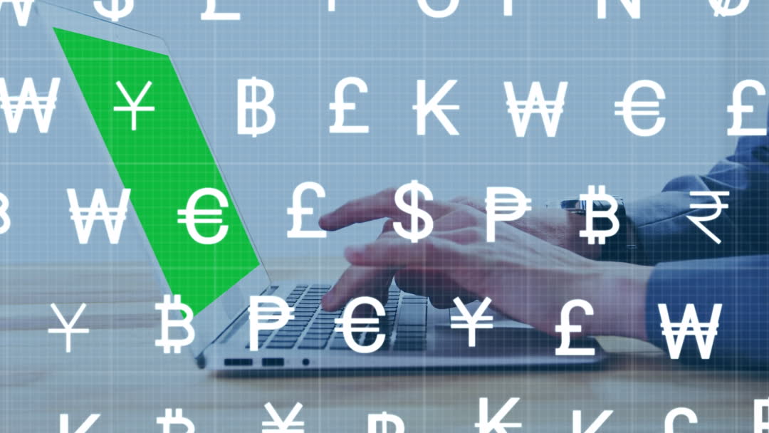 This video shows hands typing on a laptop with various global currency symbols like dollar, euro, pound overlaid, indicating digital financial transactions. A perfect representation for concepts involving online finance, international business strategies, or economic analysis, suitable for use in articles, blog posts, or financial tech presentations.