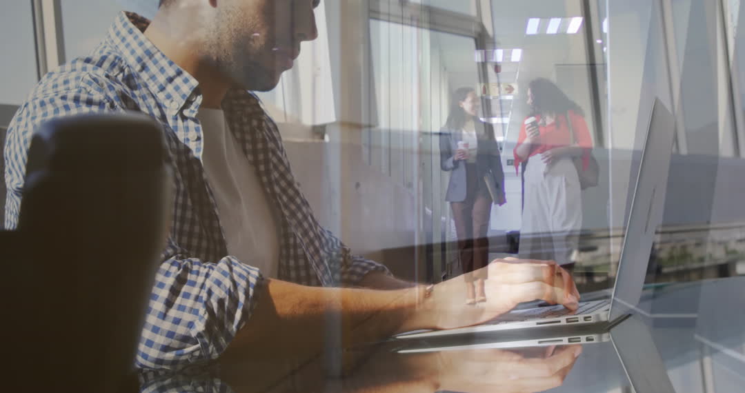This video combines the concept of modern business practices with technology, showing a businessman typing on a laptop overlaid with a networking scene. Ideal for illustrating digital connectivity, business meetings, and online collaboration in business environments. Useful for marketing materials, presentations, or articles focused on the integration of technology in corporate settings.