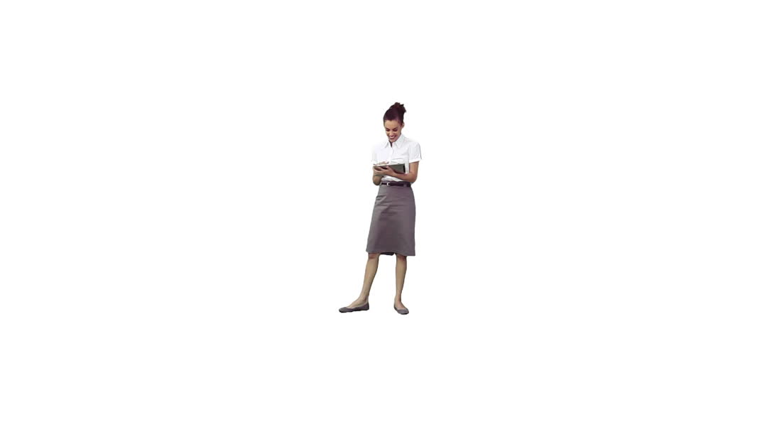 - Businesswoman Analyzing Data on Tablet Device White Background
