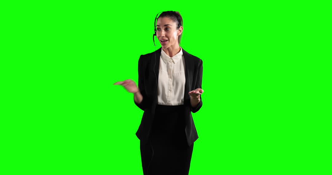 - Businesswoman Communicating Using Phone Headset with Green Screen