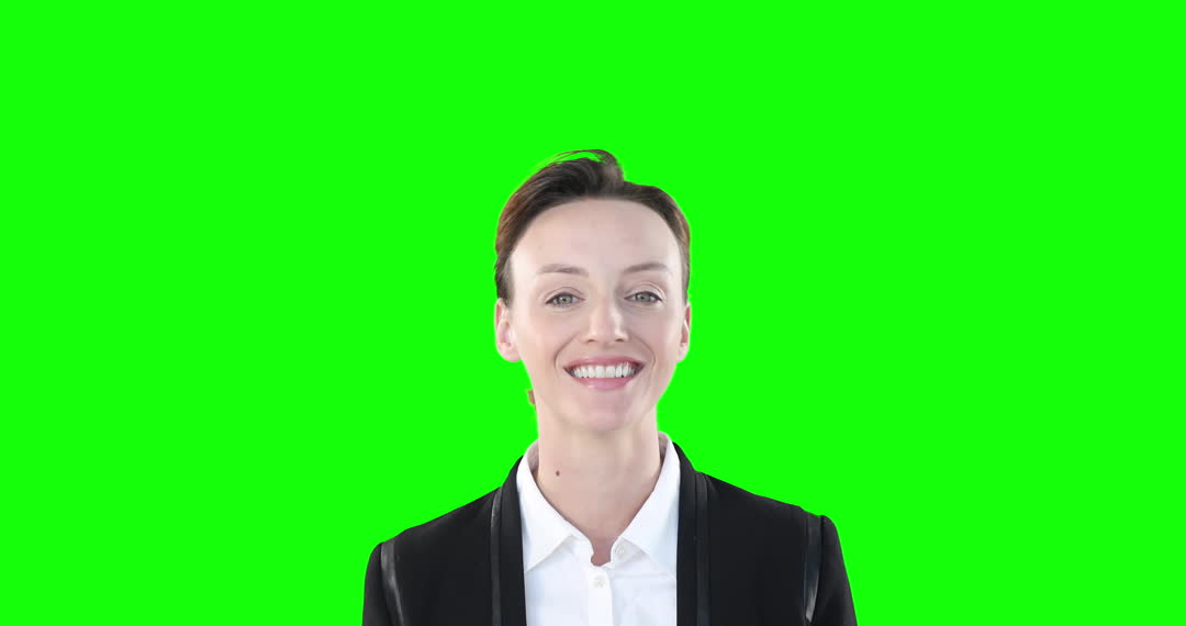 - Businesswoman Expressing Surprise, Smiling on Green Screen