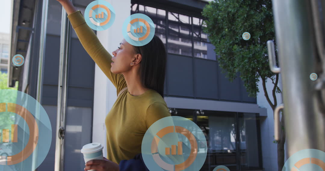 - Businesswoman Hailing Cab with Data Visualization Concept