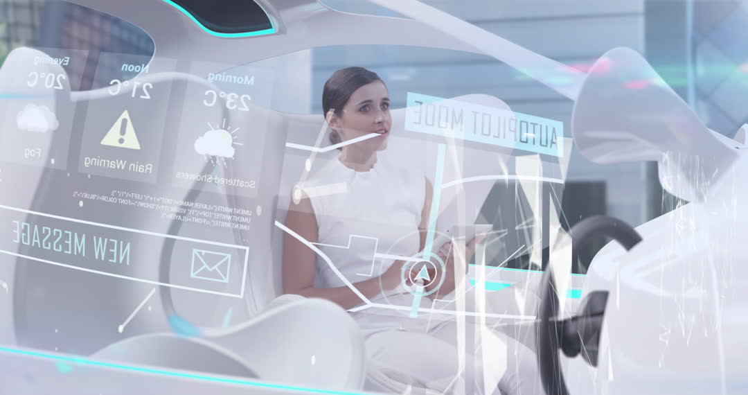 - Businesswoman in Autonomous Car with Augmented Reality Interface