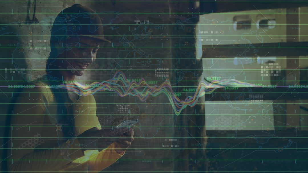 This video showcases a biracial businesswoman immersed in data processing while using a smartphone, with global data and interface animations overlaid. Ideal for use in articles about business technology, global communication, or digital innovation, emphasizing connectivity and real-time data interaction.