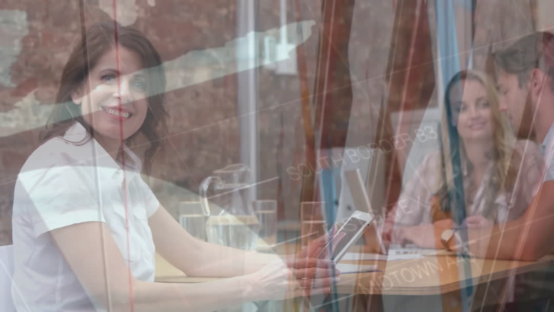 Businesswoman Using Tablet with Data Overlay Video