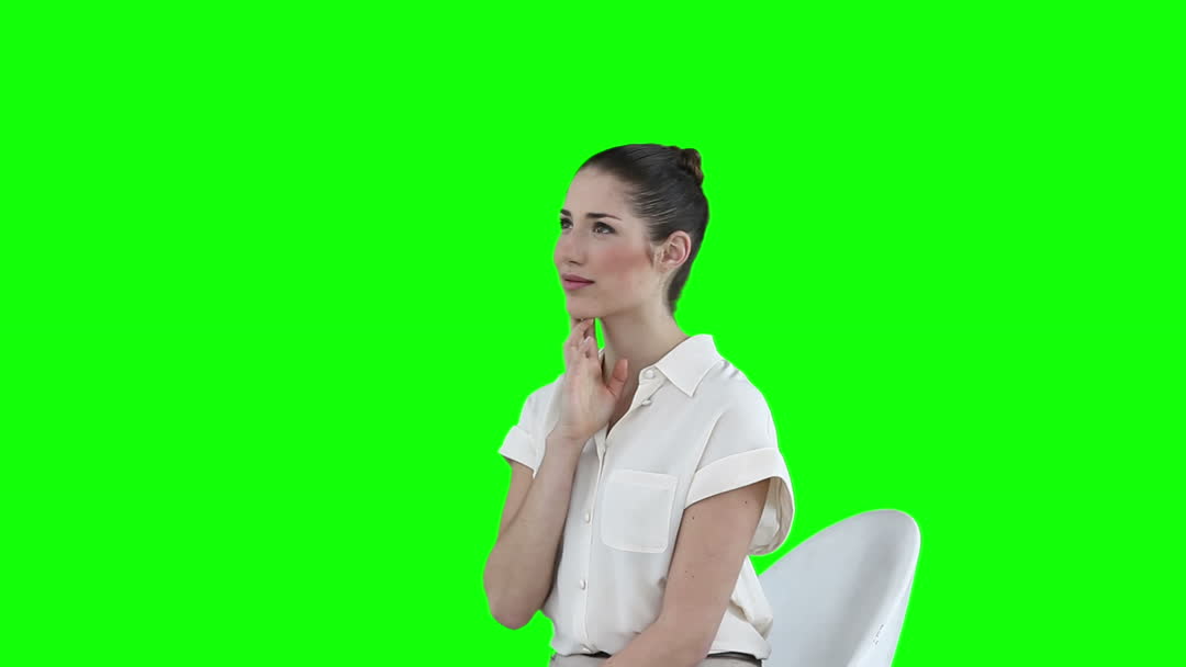 Professional woman engaging with a virtual touchscreen interface over green screen. Ideal for illustrating modern technology use, virtual environments, or digital innovation articles. Useful in presentations about future trends, interactive technology, or advertising campaigns requiring editable backgrounds.