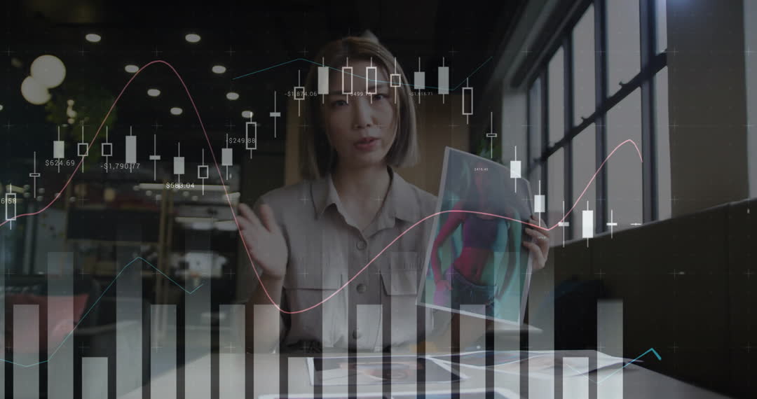 - Businesswoman Video Call with Digital Graphs Overlay
