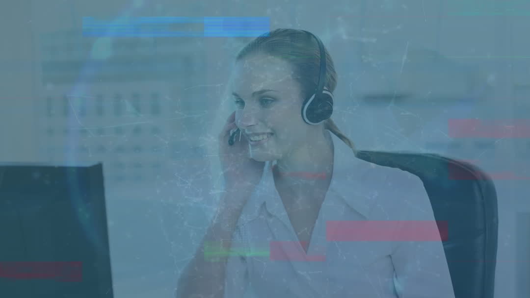 Businesswoman with Headset and Digital Data Network Overlay Video