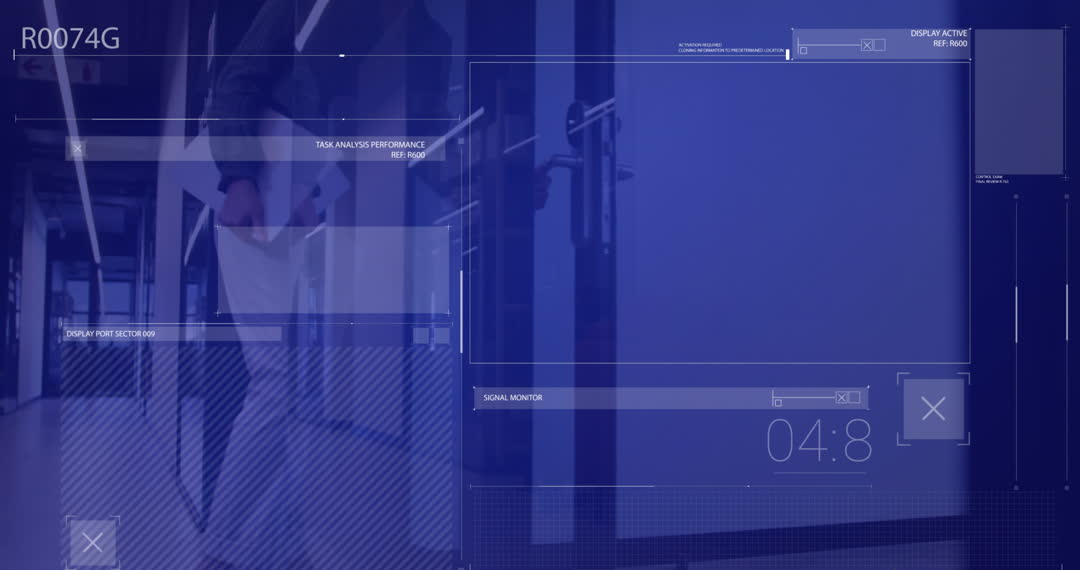 An animated digital interface overlays a scene of an Asian businesswoman carrying a laptop into a boardroom. The blend of business setting and technology suggests concepts such as digital transformation, modern corporate environment, and technological advancement. This video suit use for presentations on innovation in the workplace, corporate brochures, and digital future-themed marketing materials.