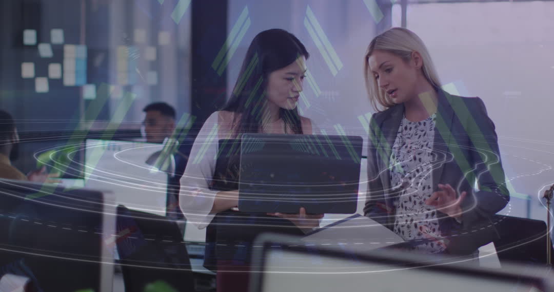 <a target="_blank" href=https://pikwizard.com/video/businesswomen-collaborating-on-laptop-conceptually-overlaid-with-technology-tunnel/df0e87666c2feb97729081842e1ce58b/>PikWizard</a>