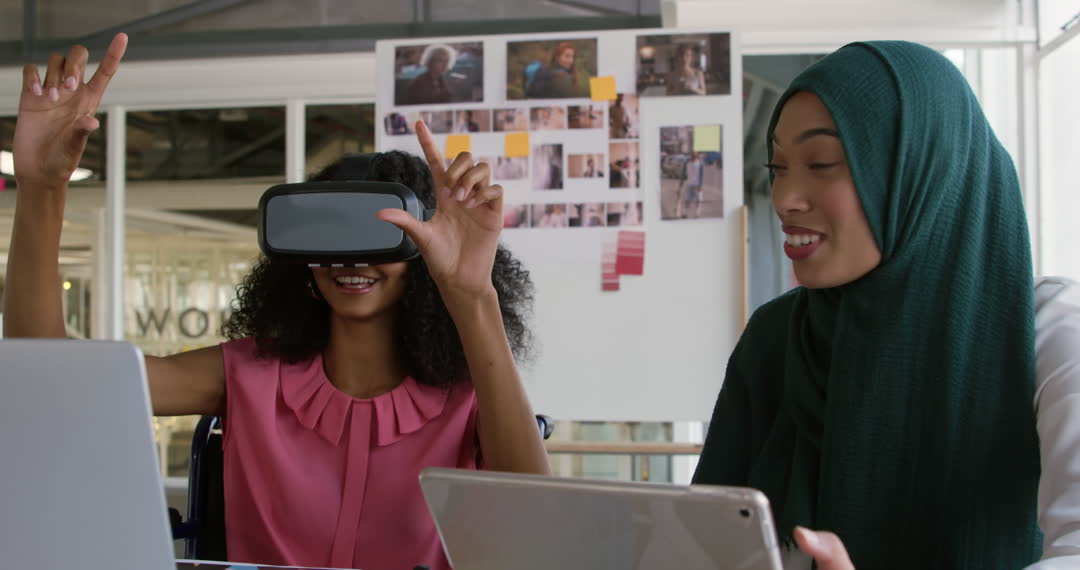 - Businesswomen Collaborating with VR and Technology in Modern Office