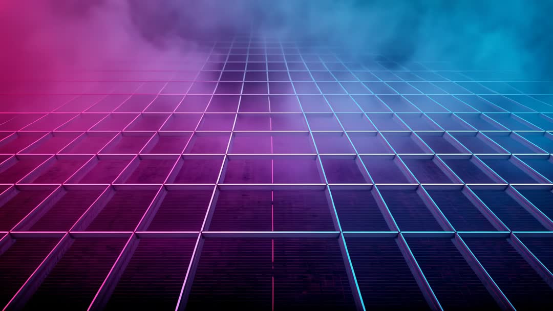 AI Generated Image. Camera dolly pushing neon grid plane forward across reflective tiles, revealing drifting fog and deep perspective. Magenta and cyan color palette creating retrofuturistic synthwave mood. Composition emphasizing leading lines and vanishing point for strong depth and cinematic impact. Useful for music video openers, electronic music visualizers, nightclub LED wall content, broadcast lower thirds, title sequences, website hero backgrounds, tech product promos, VR scene transitions. Clip working well as loopable background thanks to seamless tiling and repeating pattern. Recommend slow motion or speed ramping to enhance cinematic feel. Color grading supporting neon highlights and deep shadows for high-contrast look. Suitable for branding projects, social media ads, event visuals, album art, streaming overlays and motion graphics templates.