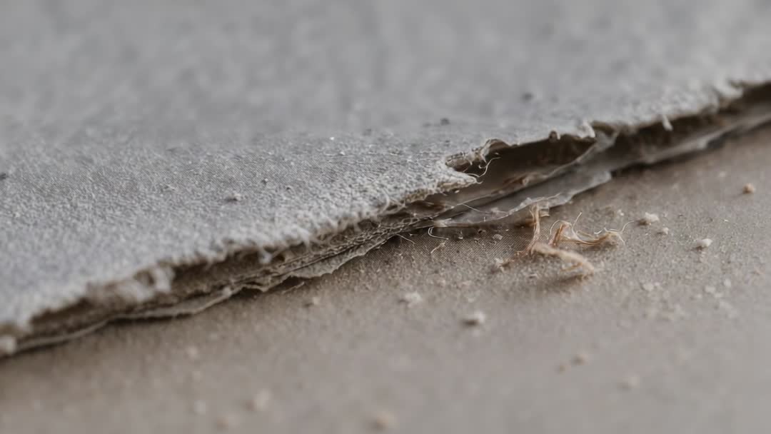 AI Generated Image. Close-up video capturing camera shifting focus across frayed torn paper edge and curled fiber fragment, with fine dust particles on tabletop. Clip serving for packaging defect demonstrations, material texture libraries, restoration tutorials, quality control presentations, art and design backgrounds, and motion design projects. Neutral gray palette and shallow depth of field creating moody, tactile atmosphere for editorial, advertising, product detail reels, cinematic cutaway shots. Experimenting with slow motion playback and deliberate focus pull timing, emphasizing fiber detail; cropping for horizontal or vertical formats; looping for seamless background; blending as texture overlay in compositing.