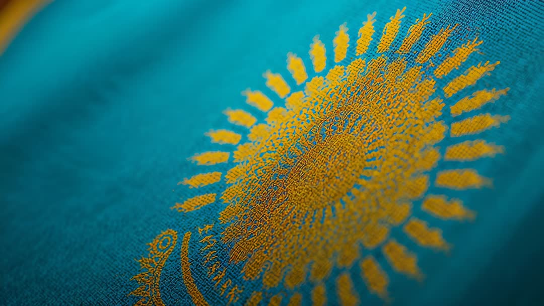 AI Generated Image. Close-up footage showing camera sliding over teal textile, focus pulling revealing intricate golden embroidered medallion. Macro framing highlighting thread detail, weave texture, and metallic sheen. Footage fitting product hero, craft tutorial, fashion branding, cultural celebration, or background loop for motion graphics. Editors using footage for title sequences, transitions, slow reveal shots in luxury commercials, brand identity films, and social media reels.
