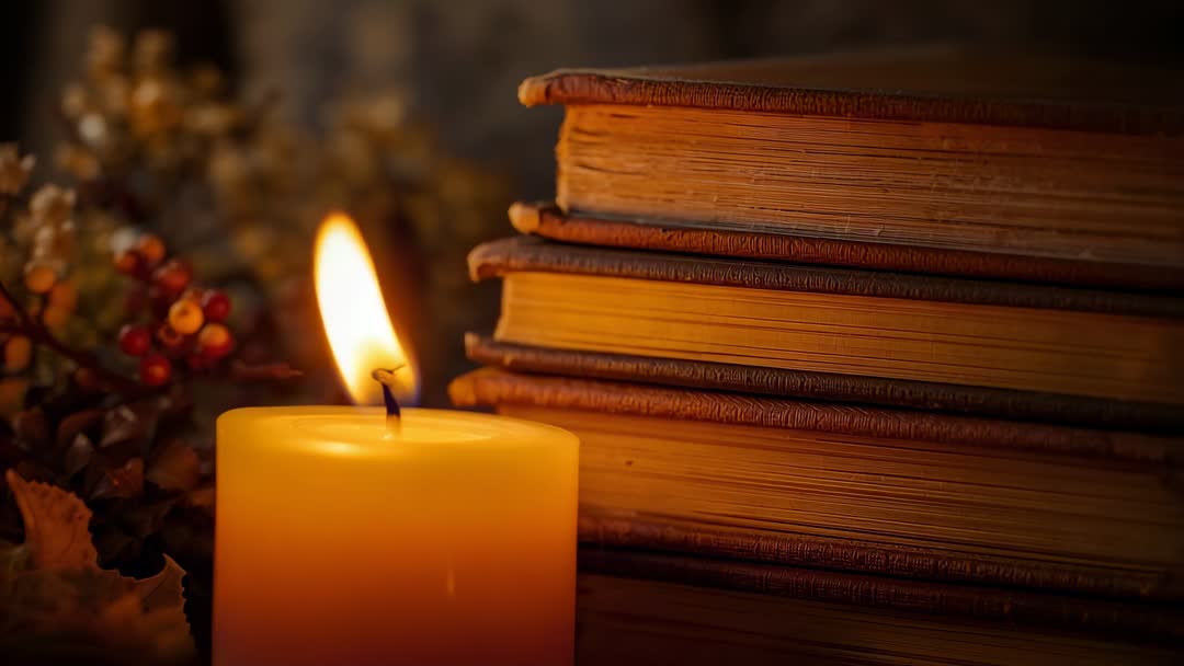 <a target="_blank" href=https://pikwizard.com/video/candlelight-flickers-beside-vintage-books-on-rustic-table/106a2ecc742306495438e06addd4edca/>PikWizard</a>