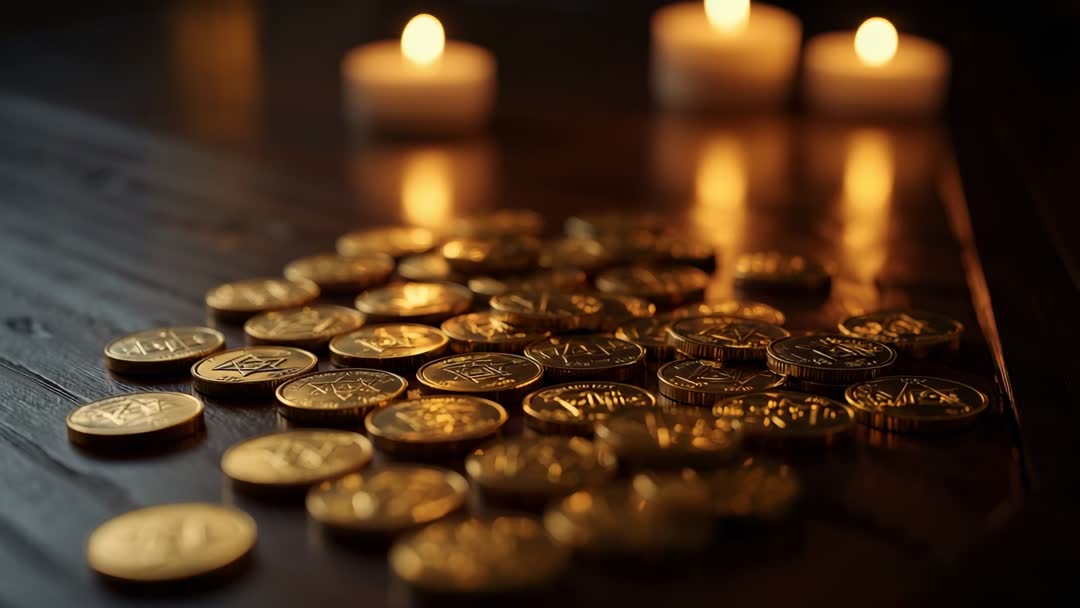 - Candlelit Coins Glimmering in Ambient Glow of Candlelight