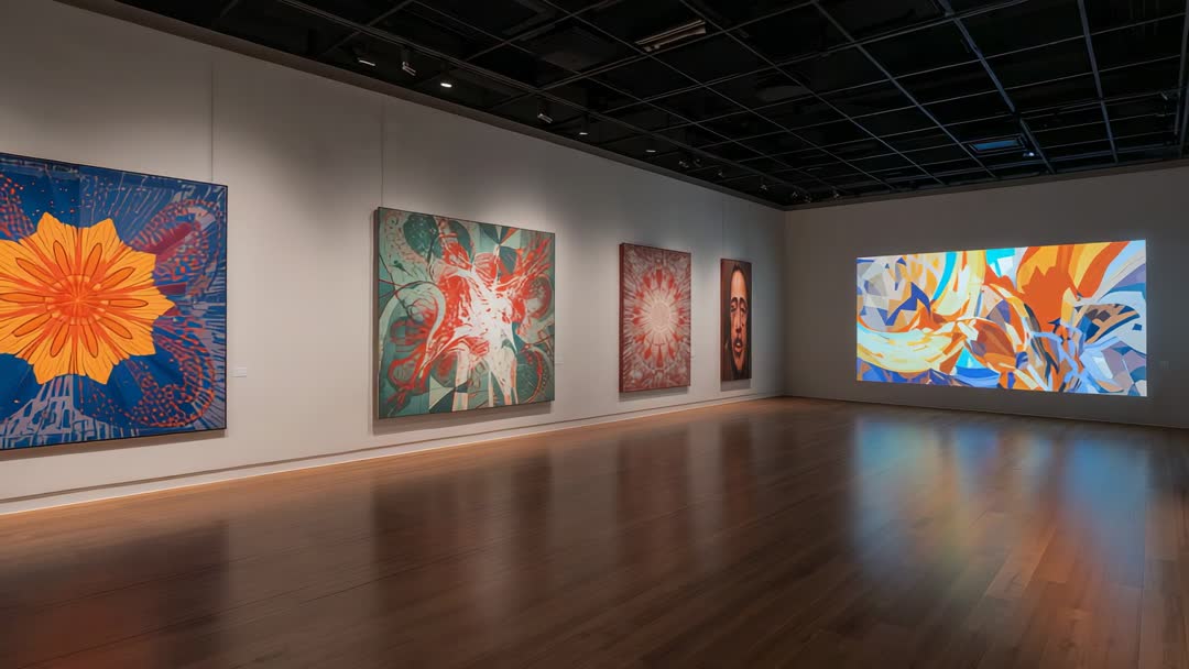 - Captivating Pan of Contemporary Art in Museum Gallery