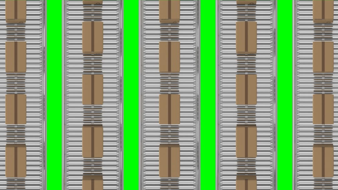 Cardboard Boxes on Automated Conveyors Against Green Video
