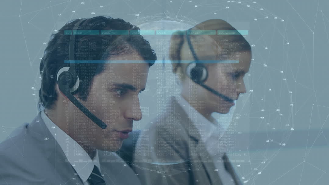 - Caucasian Business Professionals with Headsets Digital Overlay