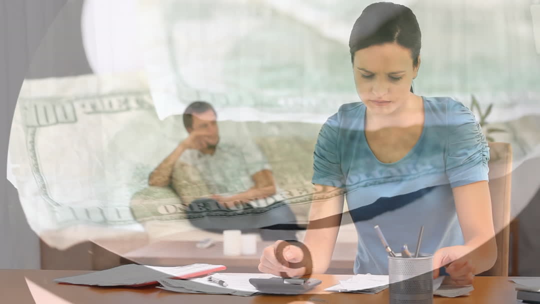 - Caucasian Couple Counting Money with Financial Overlay Effects