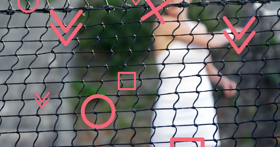 - Caucasian Female Badminton Player Focuses Amid Abstract Graphics