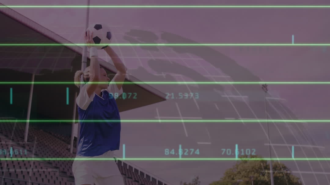 Caucasian Female Soccer Player with Digital Finance Overlay Video