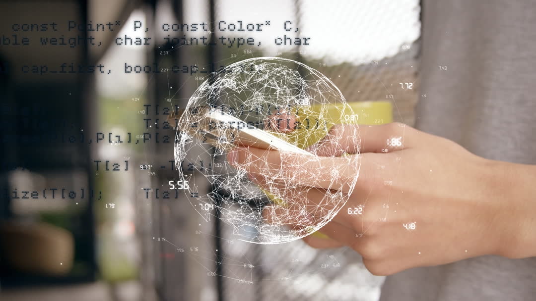 Image depicts a Caucasian woman using a smartphone with digital animations illustrating network connections and global communications. Could be used in tech articles, promotions about connectivity apps, or educational materials in digital technology except mix up step equivalouch pilot foe expedite occur catchecerer trade advck.