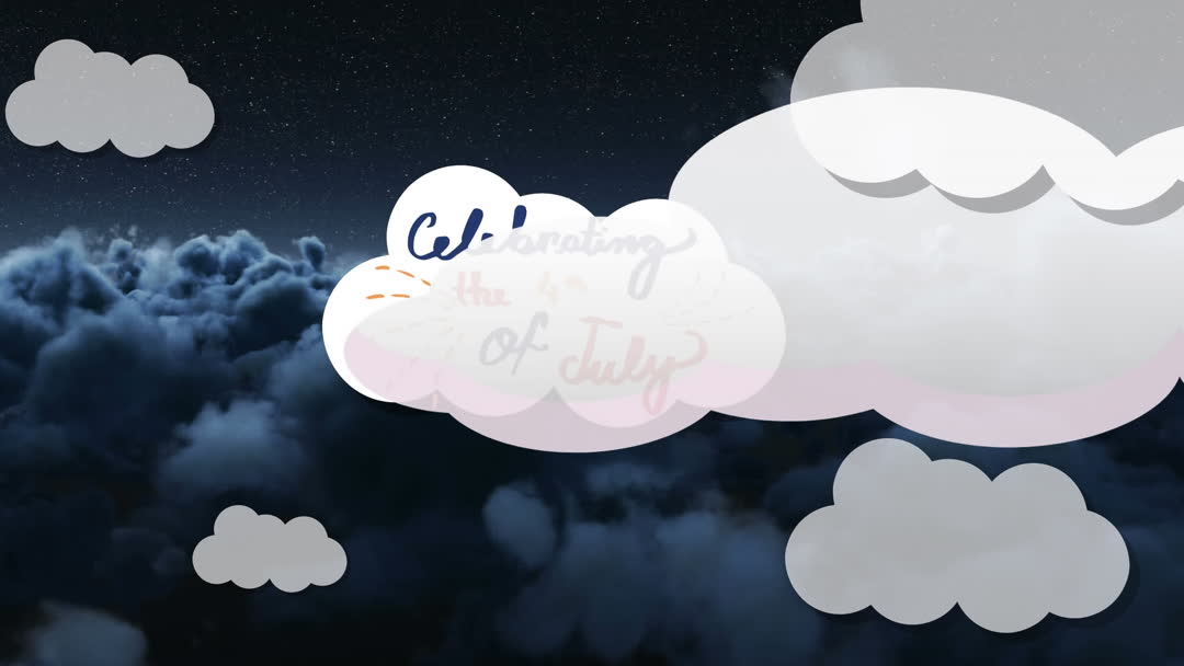 This animation features a festive 4th of July theme, depicting a night sky with clouds and celebratory text. Ideal for use in Independence Day promotions, educational videos about U.S. Holidays, or social media posts commemorating American patriotism. The dynamic and whimsical element of the animated clouds and sky creates an engaging and eye-catching background perfect for varied digital content surrounding the 4th of July celebrations.