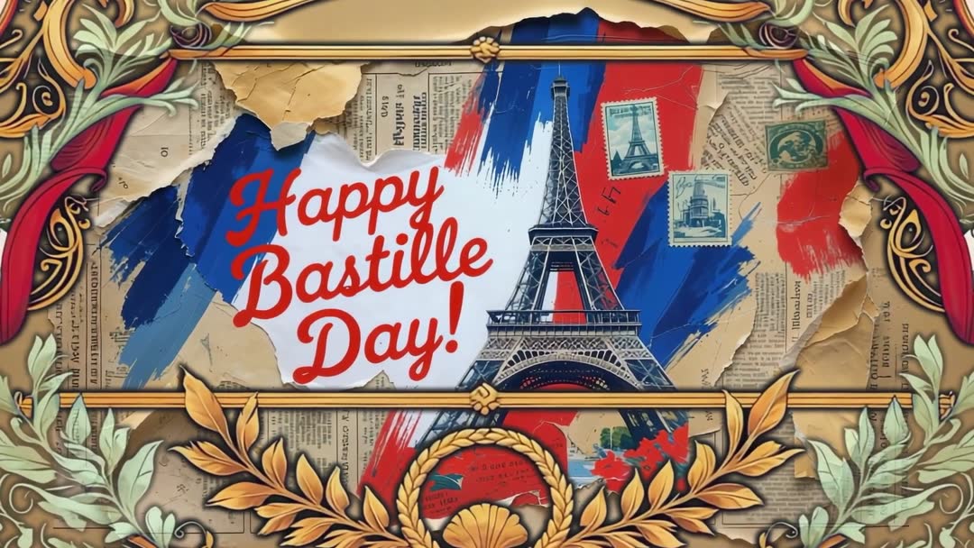 Celebratory Bastille Day Card with Eiffel Tower and Vintage Elements Video