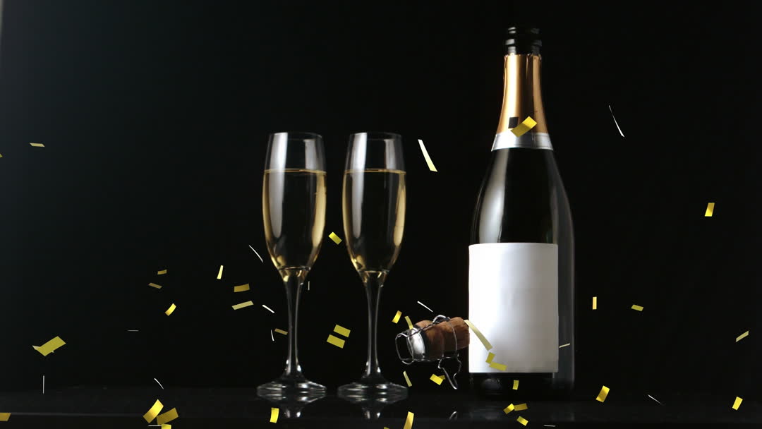 Celebratory Champagne with Falling Confetti for Festive Mood Video