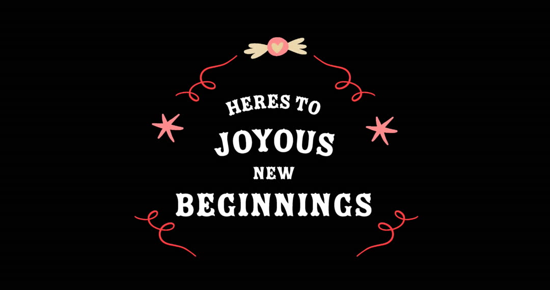 Stylish typography artwork featuring decorative stars and heart elements on a black background offers an uplifting message perfect for events focusing on new beginnings or celebrations. Ideal for greeting card designs, posters promoting positive and inspiring themes, and digital video projects celebrating occasions like New Year's or life milestones.