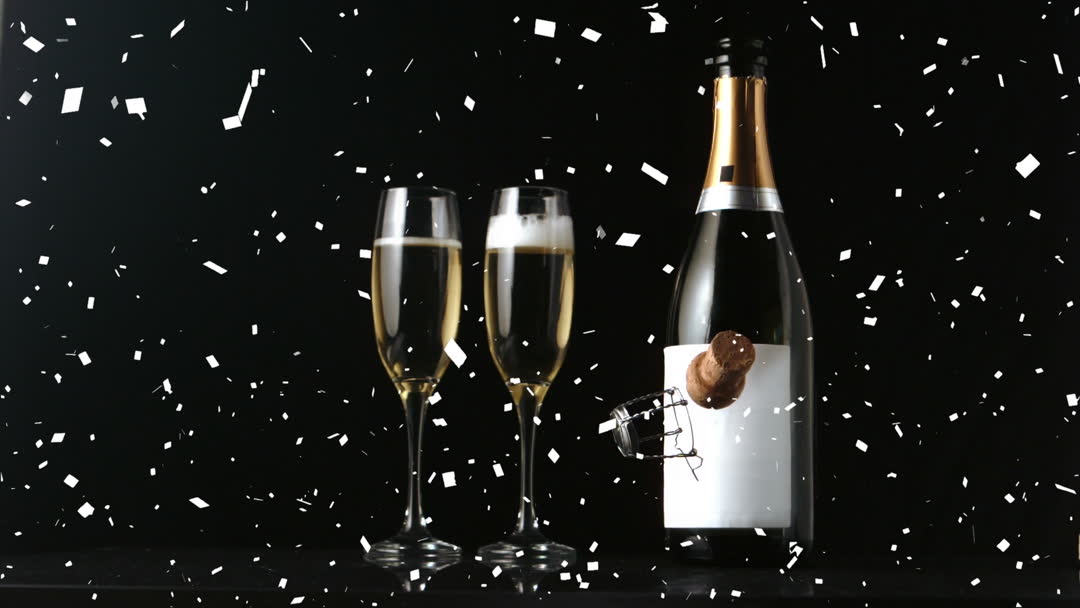 - Champagne Celebration with Falling Confetti on New Year's Eve