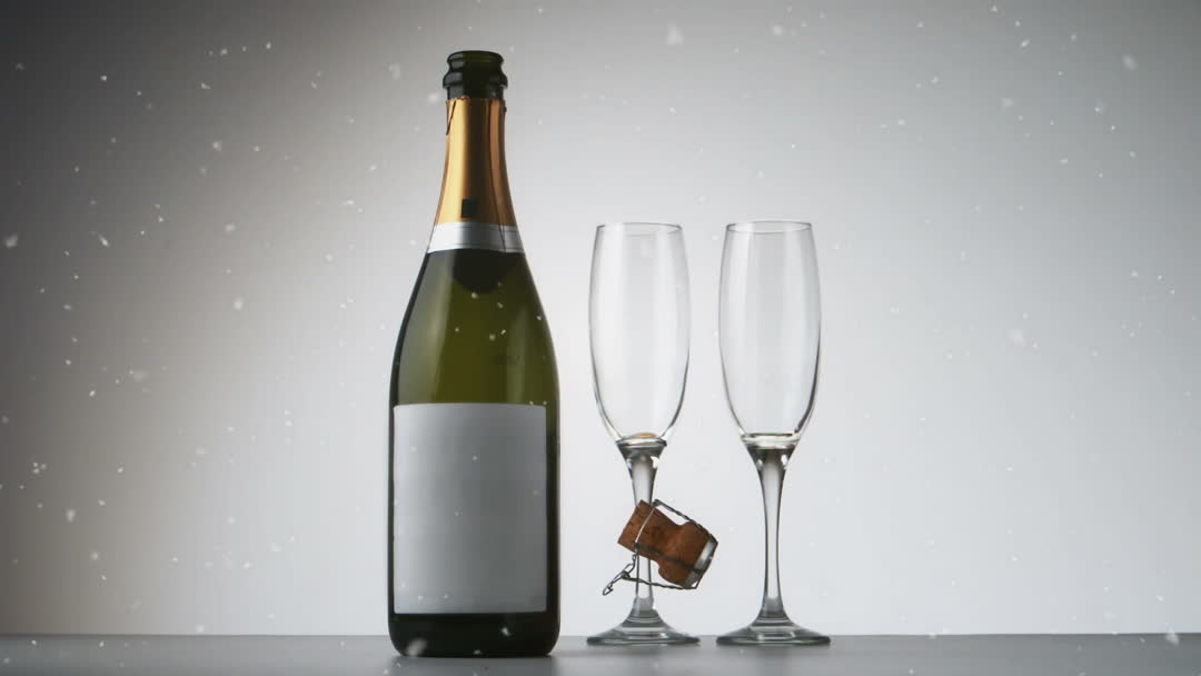 Champagne Celebration with Falling Cork and Snowflakes Video