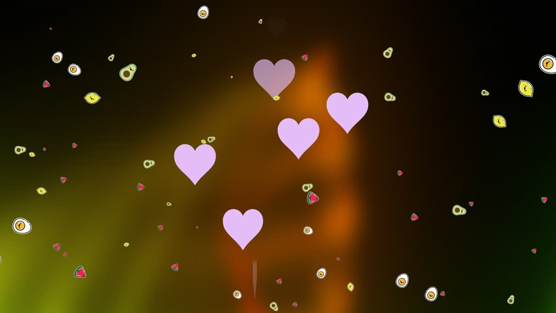 Visual with charming purple hearts fill screen against colorful abstract background while gold confetti falls. Vibrant colors and dynamic components create festive and uplifting aura, ideal for projects celebrating love, joy, or festive occasions; suitable for greeting cards, festive invitations, or lively animations.