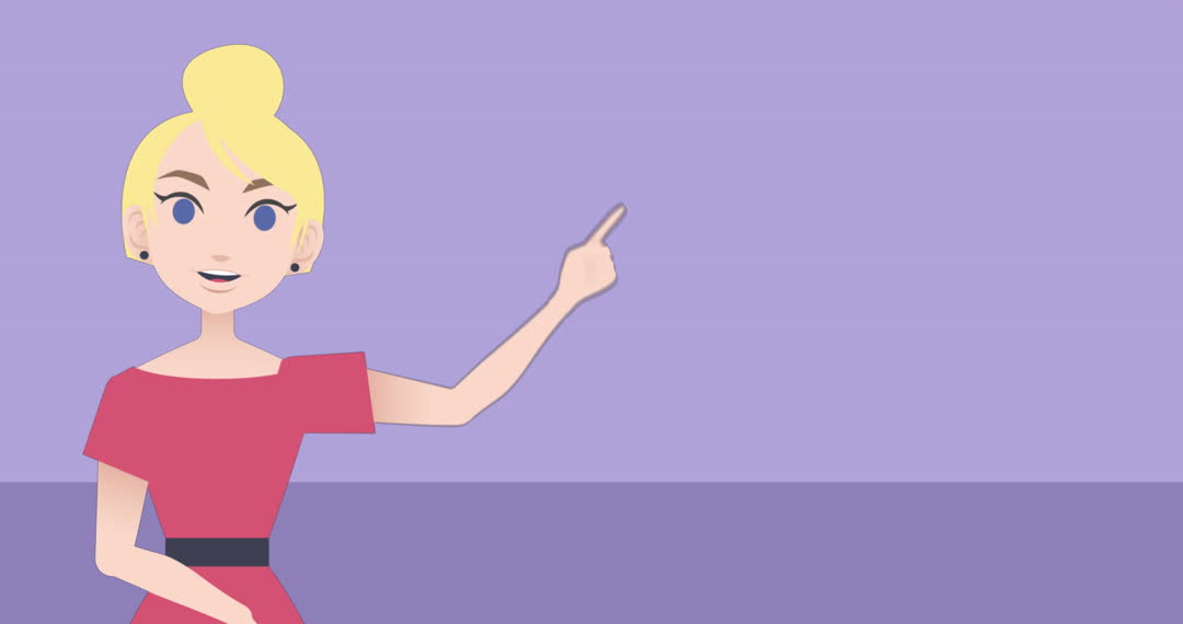 This illustration features a cheerful animated businesswoman presenting against a purple background, ideal for business presentations, educational videos, or advertising materials. The character's engaging expression and pose enhance the professional dialogue or tutorial elements, making it suitable for conveying concepts in a visually compelling manner.