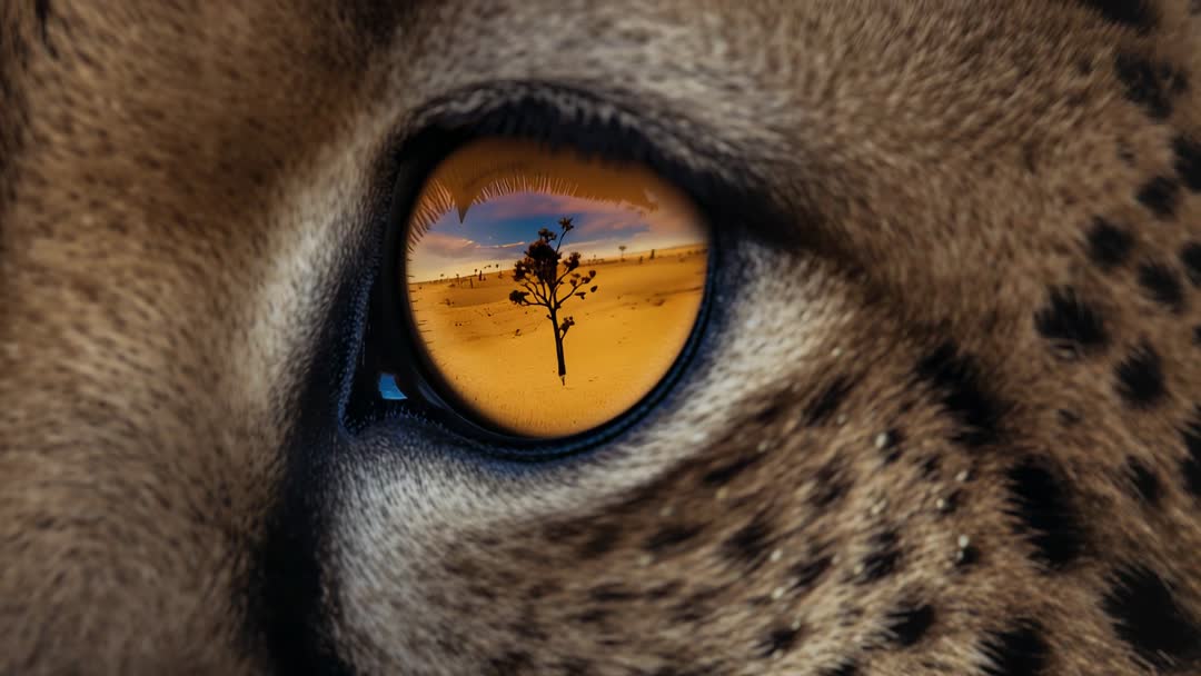 - Cheetah Eye Close-Up Revealing Desert Reflection